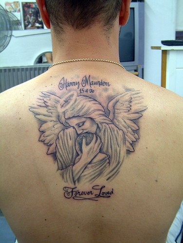 praying guardian angel tattoo black and shade by dublin ireland tattoo